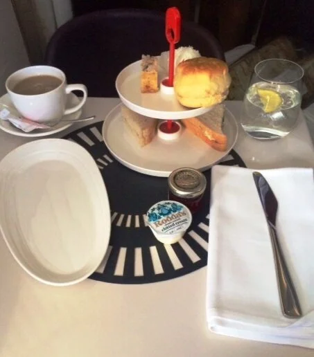 English tea, assorted finger sandwiches and sweet bites, jam and clotted creamCall me a yokel, but I was very impressed with the food and beverage services that I enjoyed in Virgin Atlantic's Upper Class cabins and lounges. Well done, Mr. Branson! Well done!